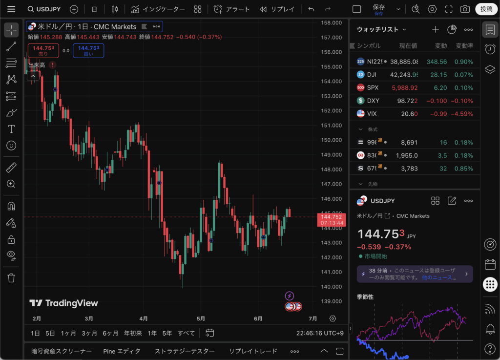 チャートツールで移動平均線(MA)を表示してみましょう。