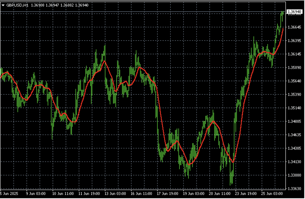 移動平均線(MA:Moving Average)はFX取引において相場分析に用いられるテクニカル指標の一つです。過去の価格データから計算された平均値を線で結んだもので、トレンドの方向や強さを把握するのに役立ちます。