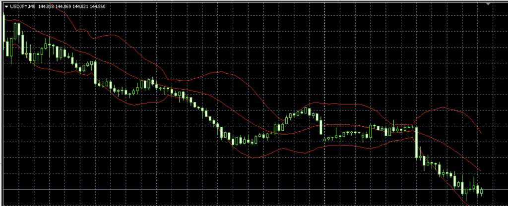 - バンド幅が広ければボラティリティが高くバンド幅が狭ければボラティリティが低いと判断