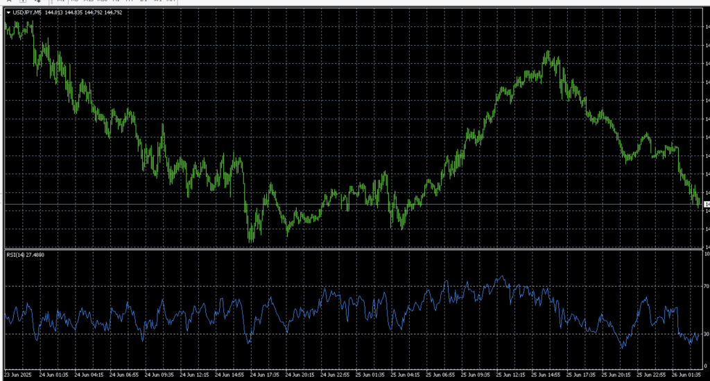 RSI(相対力指数)は、FX取引において相場の過熱感を判断するために使われるテクニカル指標です。一般的に、RSIが70%以上になると買われ過ぎ、30%以下になると売られ過ぎと判断されます。これらのゾーンで反転が見られた場合に、それぞれ売り、買いのサインとして利用されます。